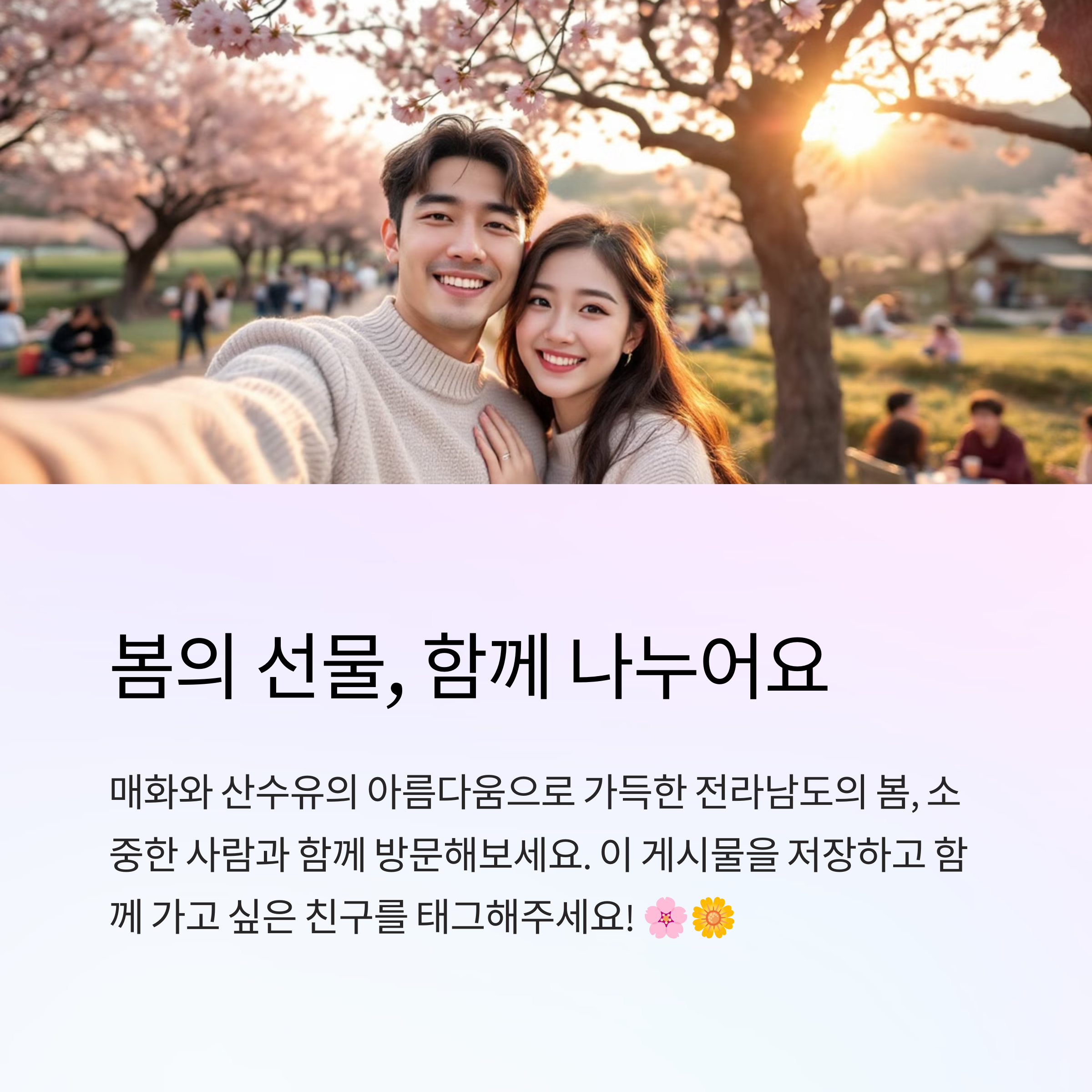 올봄, 전라남도의 아름다운 매화와 산수유꽃으로 물든 풍경 속에서 소중한 사람들과 함께 특별한 추억을 만들어보세요. 각자의 마음속에 더 아름답게 피어날 꽃은 직접 확인해보시길 바랍니다!