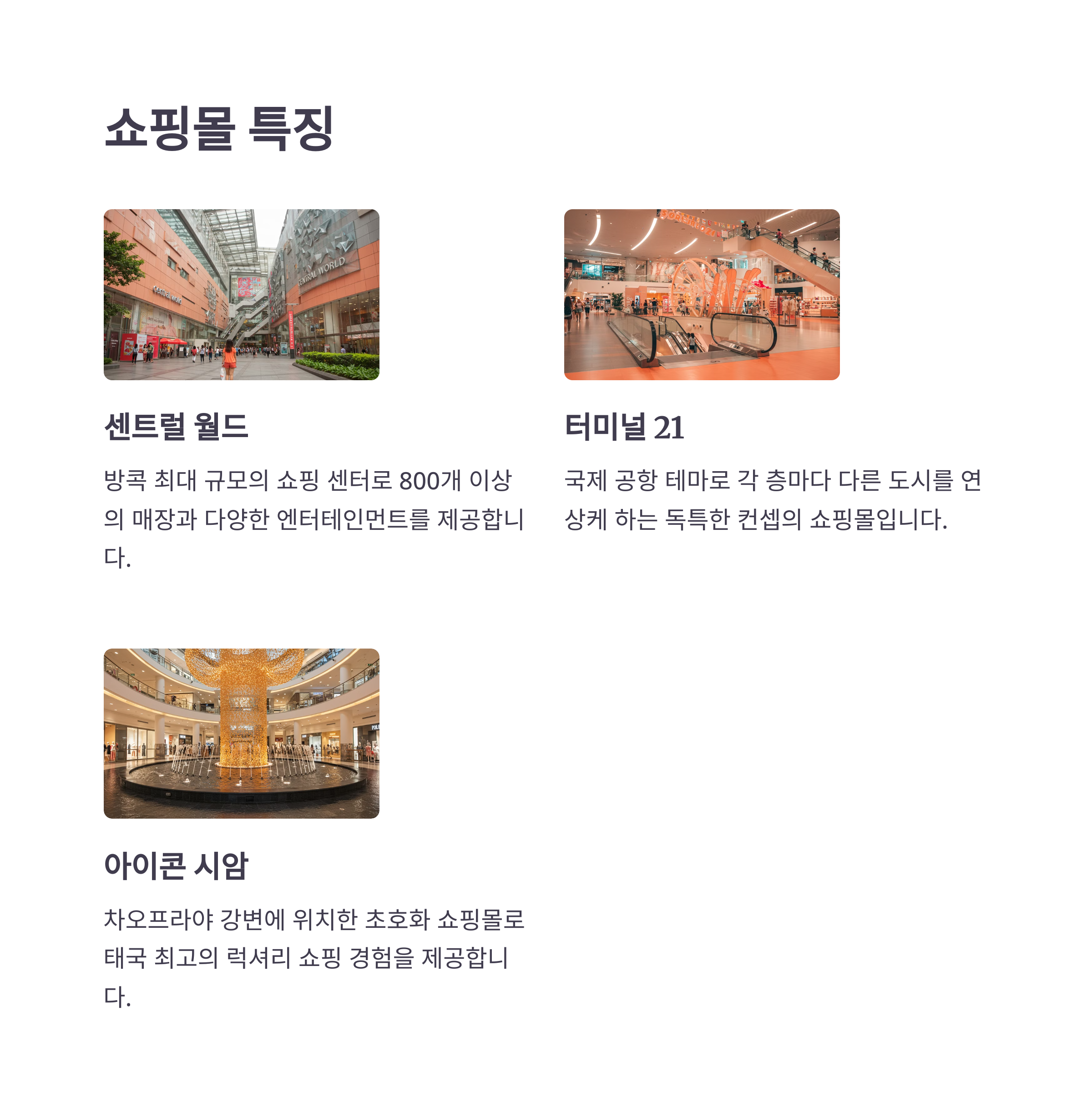 이제 방콕 여행을 계획 중이신 분들을 위해 쇼핑몰별 특징과 추천 아이템을 자세히 알아볼게요!