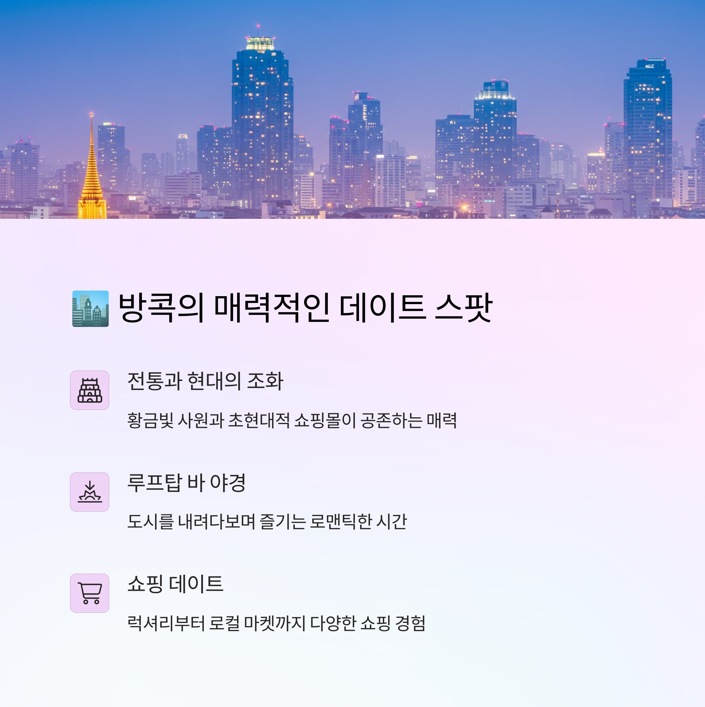 태국은 한국인이 가장 사랑하는 여행지 중 하나인데요. 특히 방콕과 파타야는 각자의 매력으로 많은 커플들의 발길을 사로잡고 있어요.