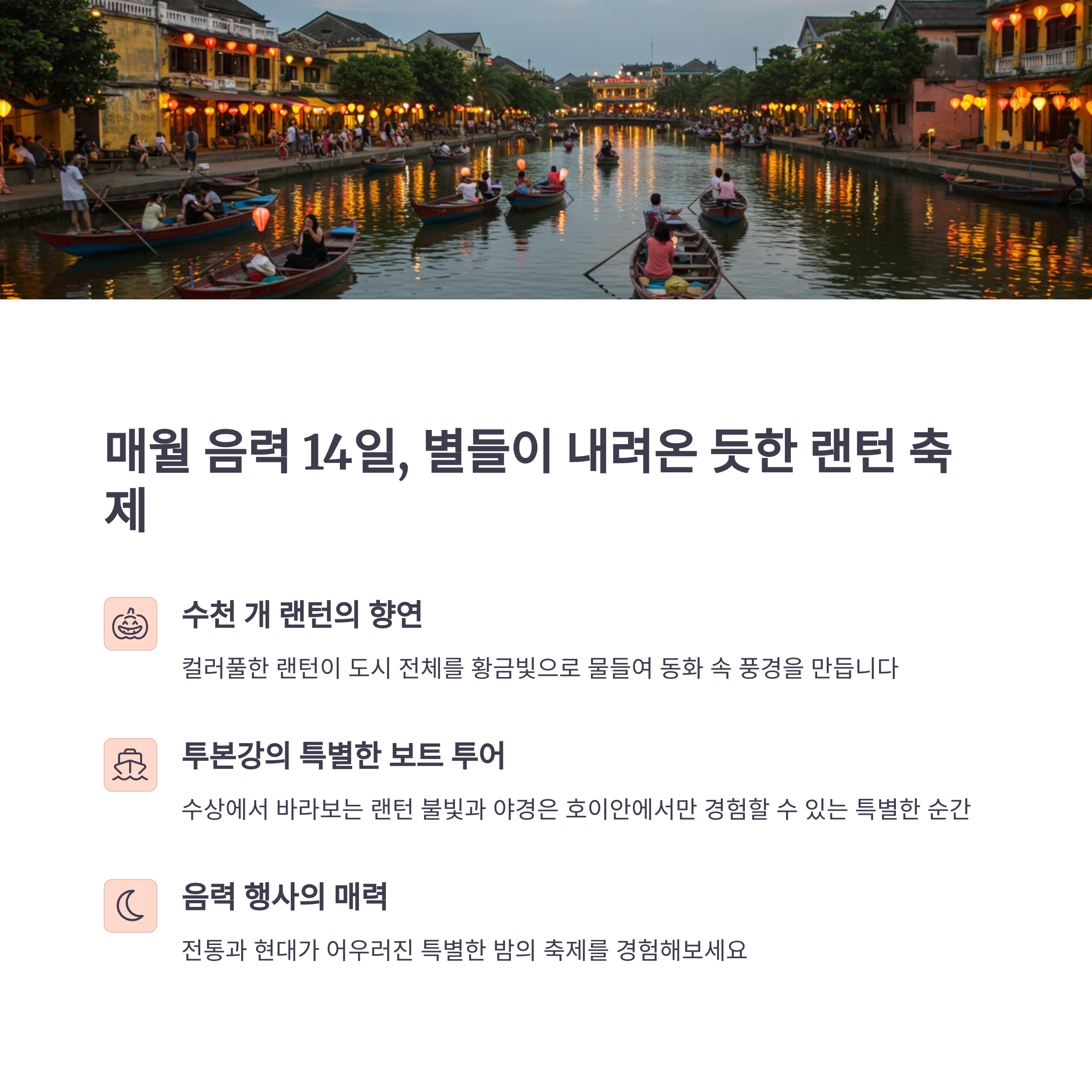 | 랜턴 축제 | 야간 투어 | 투본강 보트 |