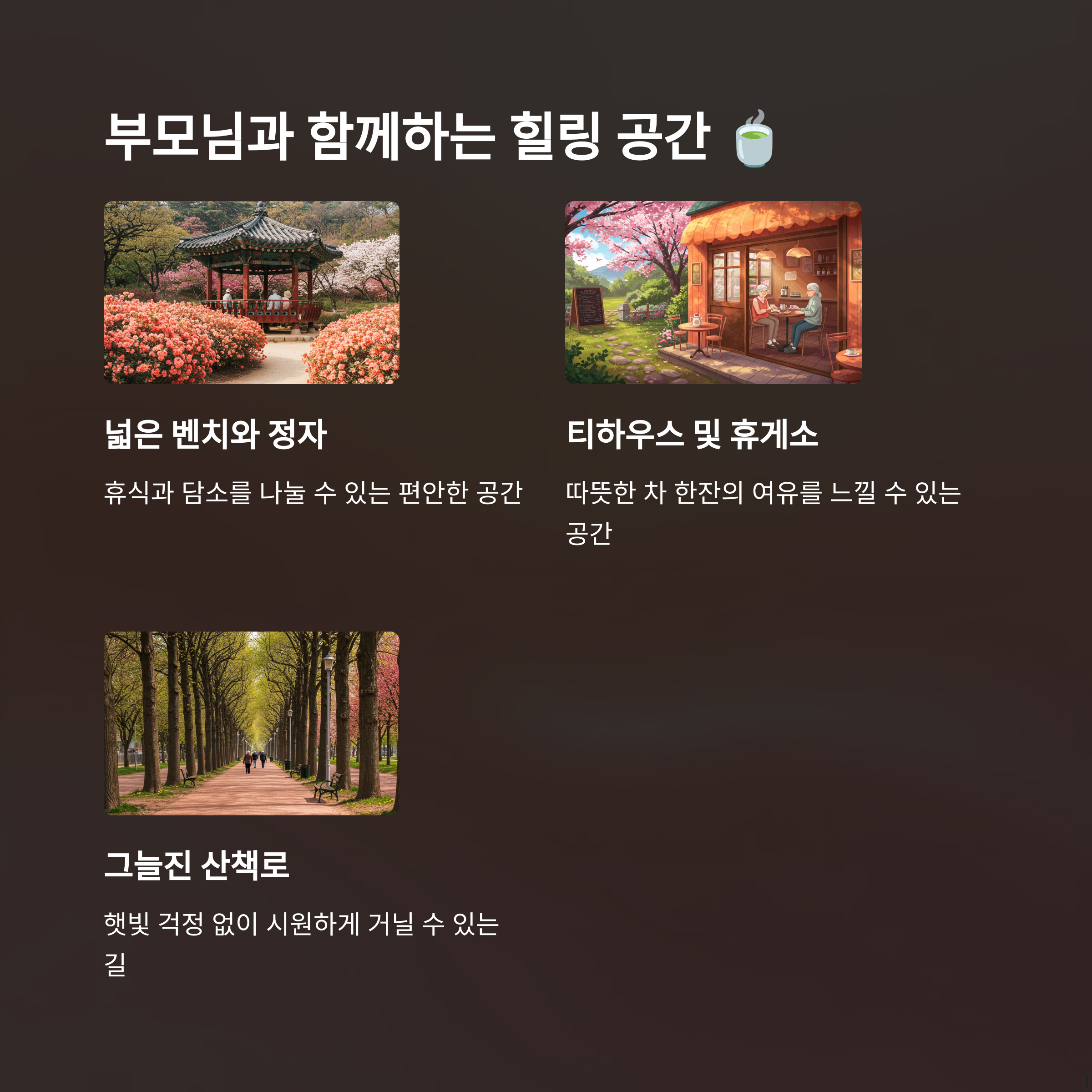 휠체어를 타시는 부모님도 함께 즐길 수 있는 장소들이니 참고해보세요! 😊