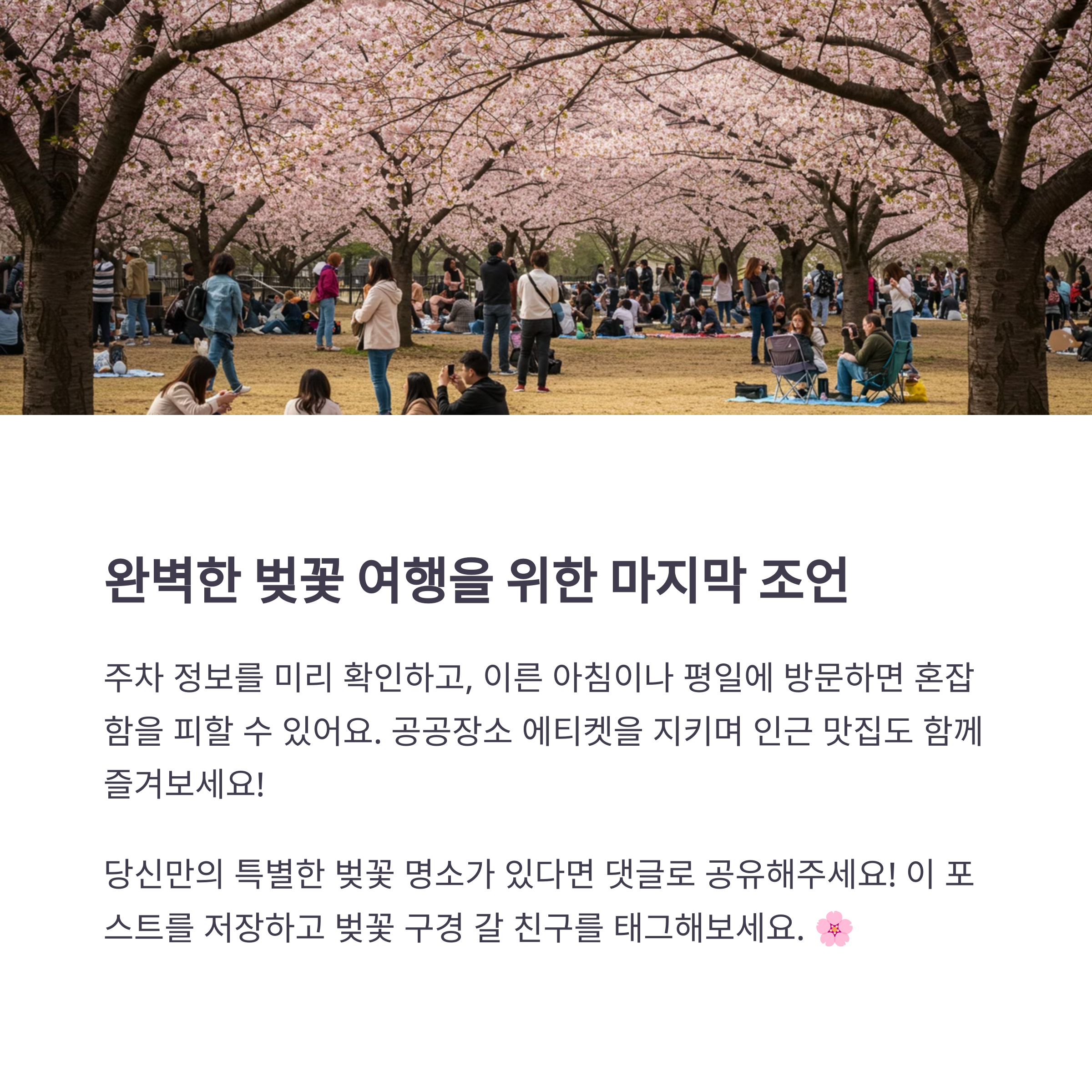 | 벚꽃 명소 방문 시 주의할 점은 무엇인가요? |