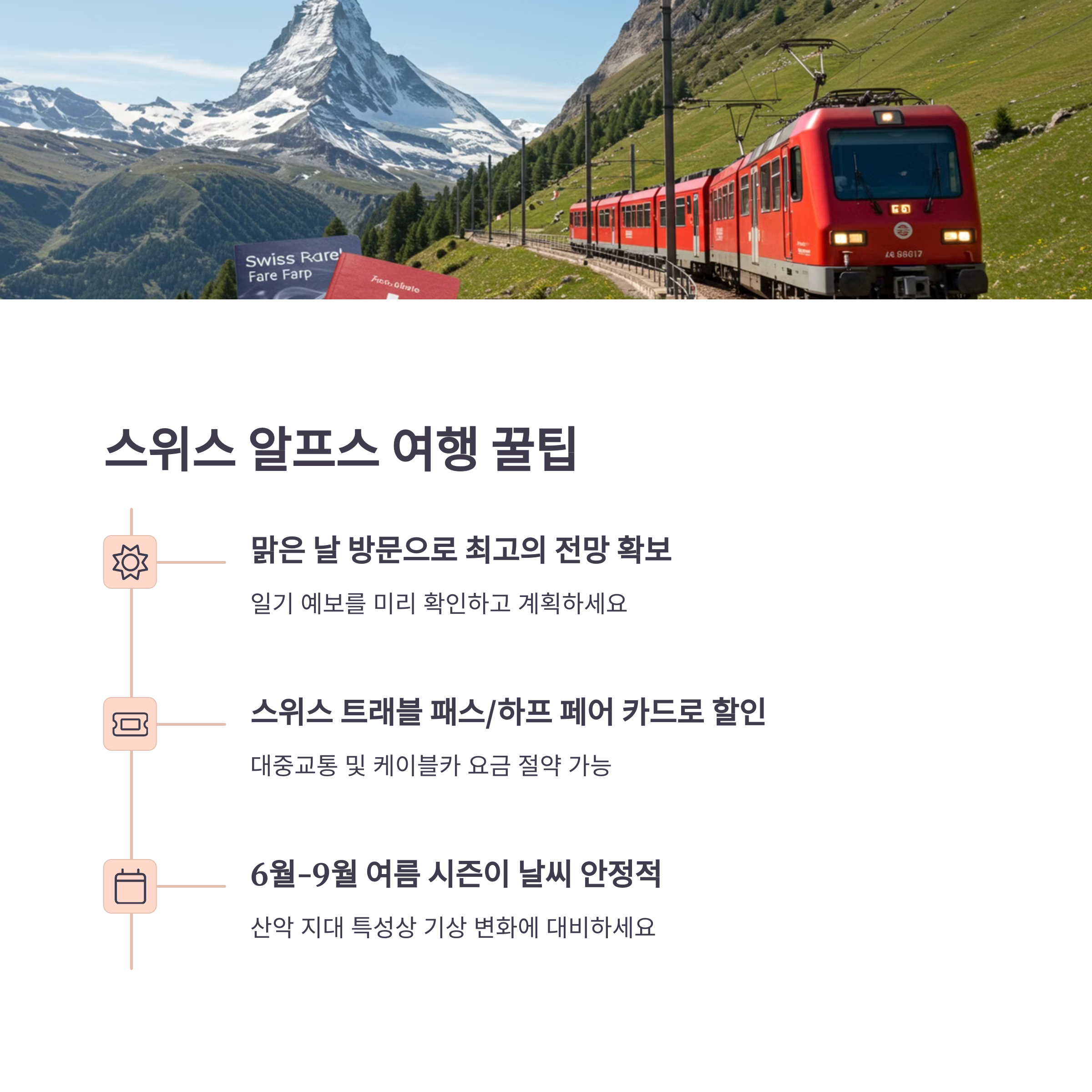 또한 스위스 트래블 패스나 하프 페어 카드 같은 교통 패스를 이용하면 대부분의 산악 교통편을 할인받을 수 있으니 장기 여행이라면 필수로 준비하세요.