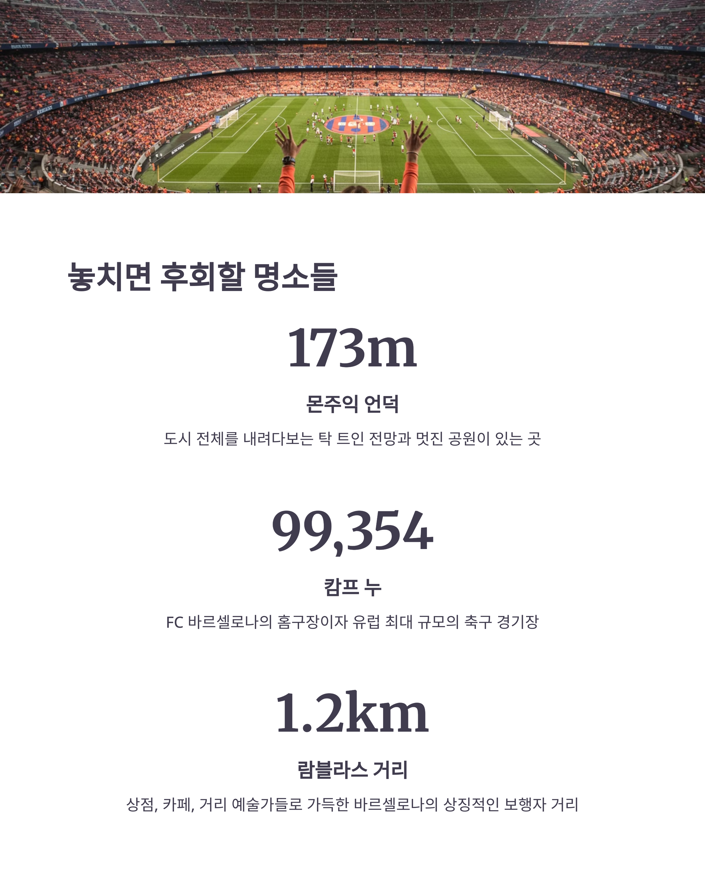 여러분의 바르셀로나 여행이 잊지 못할 추억이 되길 바랍니다!
