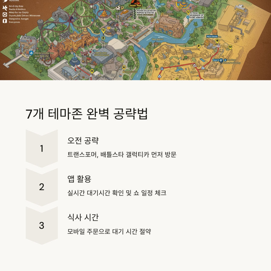 특히 트랜스포머나 배틀스타 갤럭티카 같은 인기 어트랙션은 오전 일찍 또는 저녁 늦게 방문하는 것이 좋아요. 점심 시간대에는 대부분의 사람들이 식사를 하러 가기 때문에 이 시간을 활용하면 대기 시간을 줄일 수 있어요.