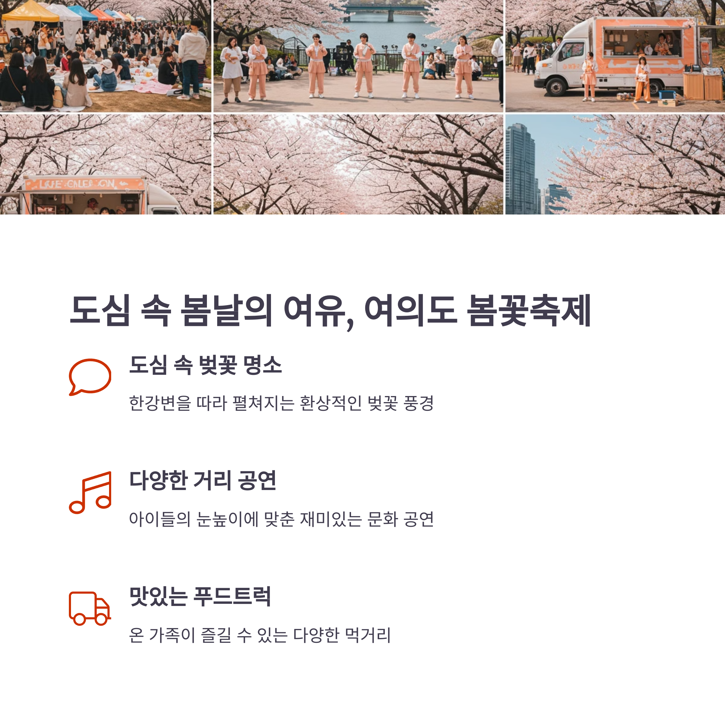 서울 도심에서 즐기는 여의도 봄꽃축제는 접근성이 좋아 아이들과 함께 방문하기 편리해요.