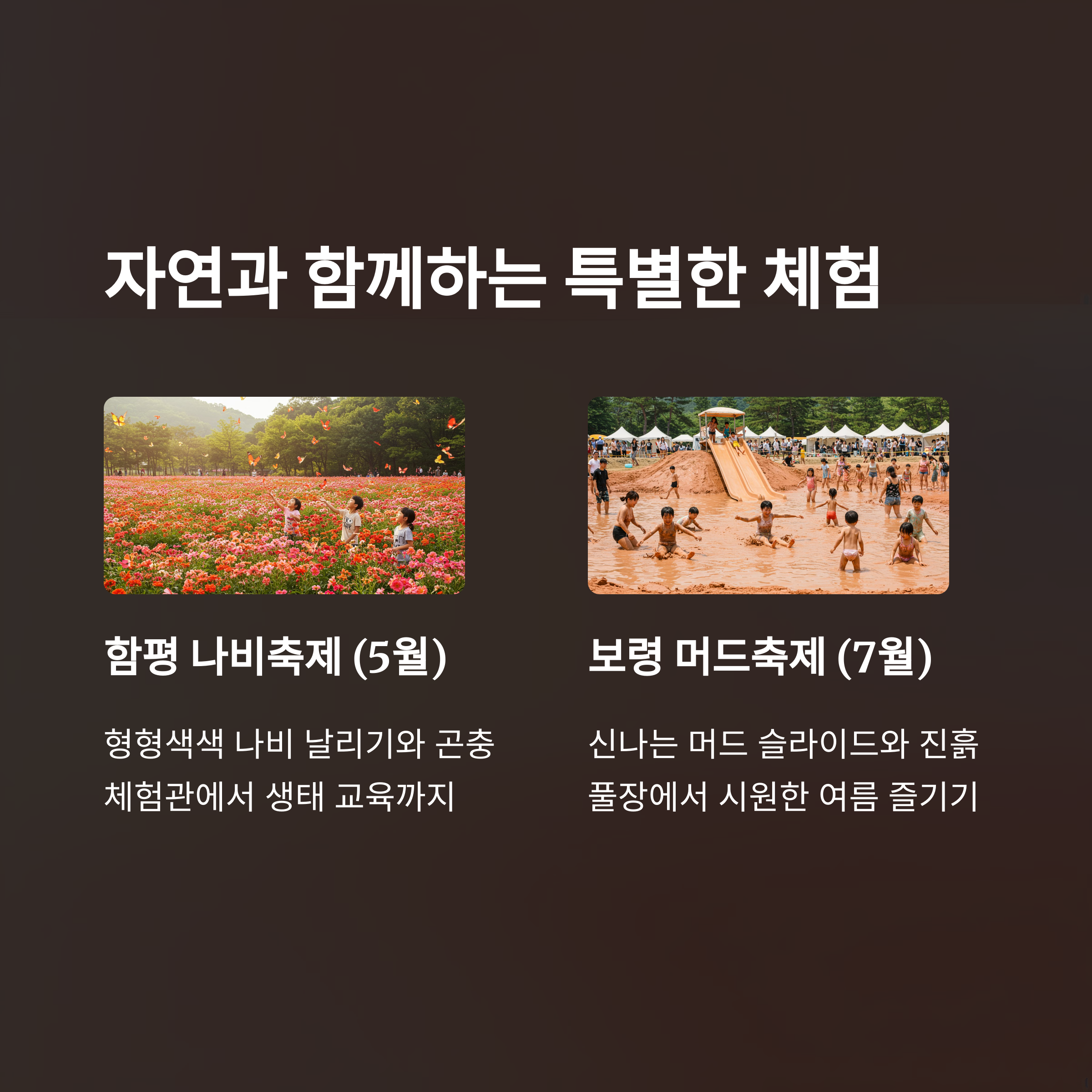 전라남도 함평에서 열리는 함평 나비축제는 아이들에게 생태 교육의 기회를 제공해요.