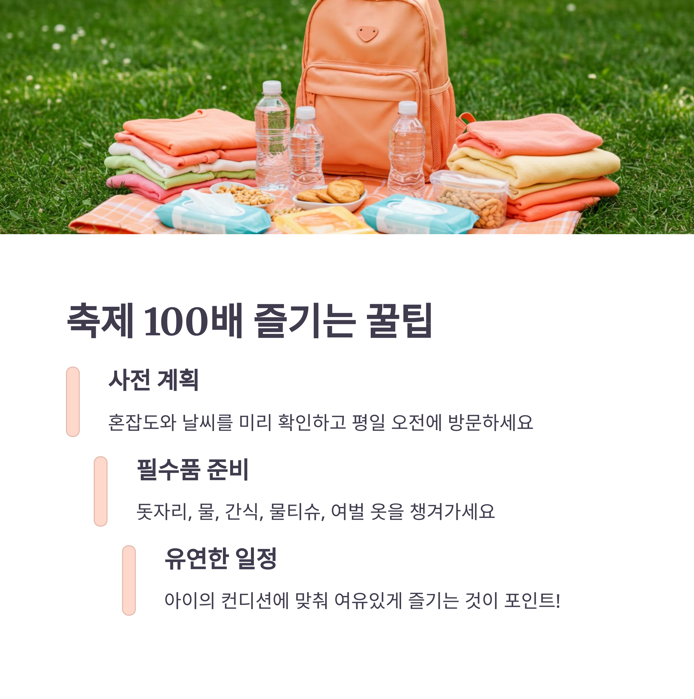 | 축제 방문 팁 | 방문 전 날씨 확인 필수! |