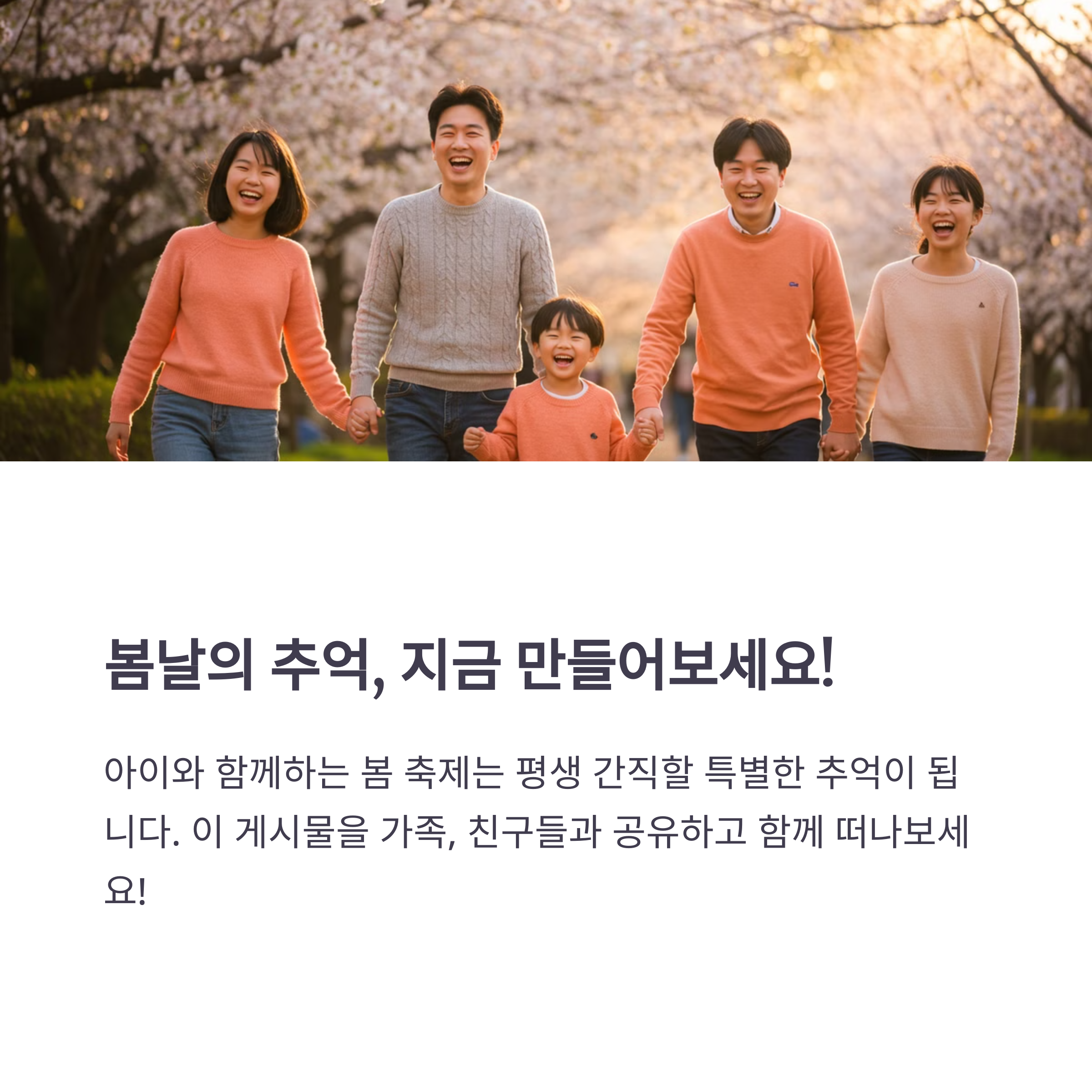 이번 봄, 아이와 함께 다양한 축제에서 특별한 추억을 만들어보세요! 🌸🌷🎡