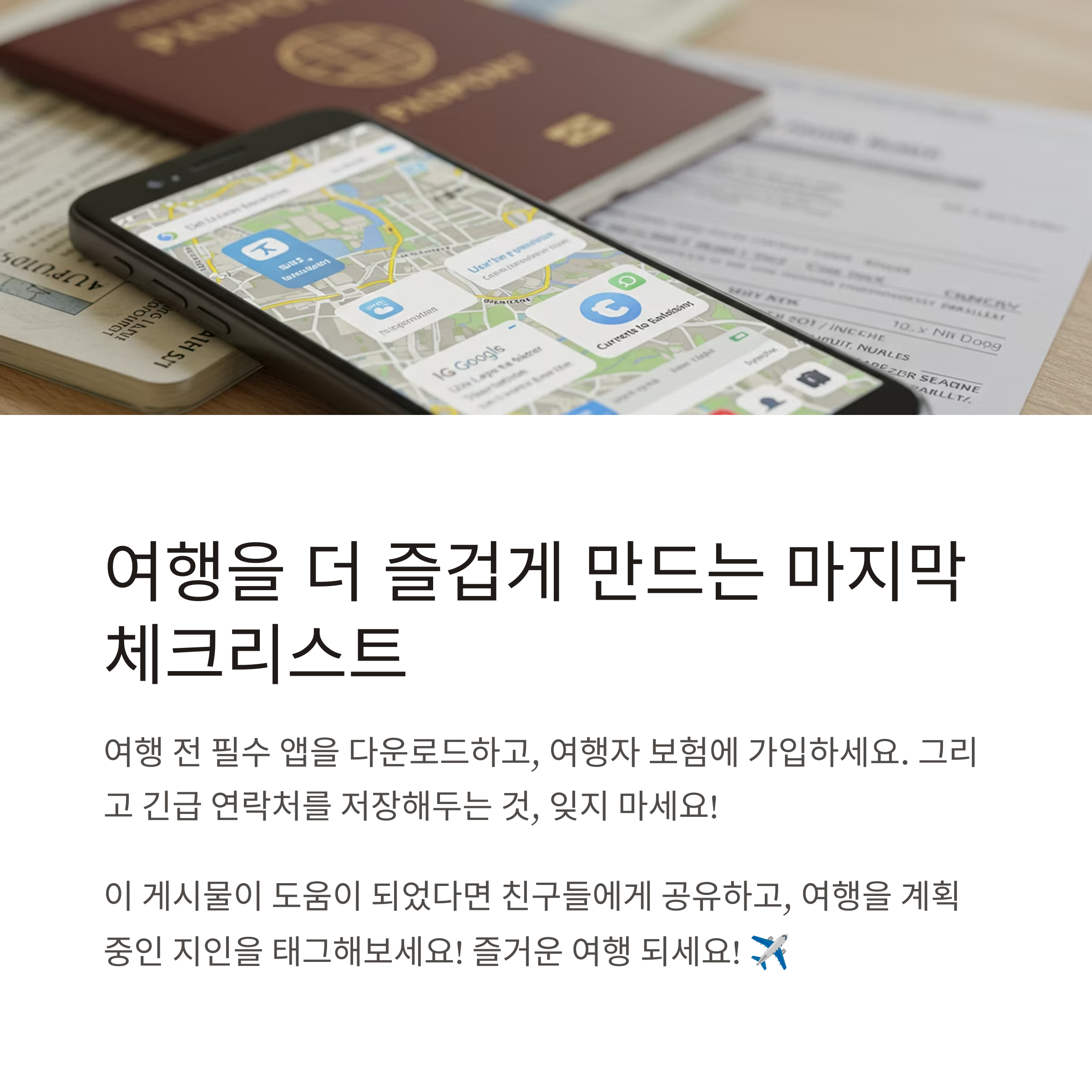 또한 여행지의 **긴급 연락처**나 **대사관 정보**를 미리 저장해두는 것도 좋아요.