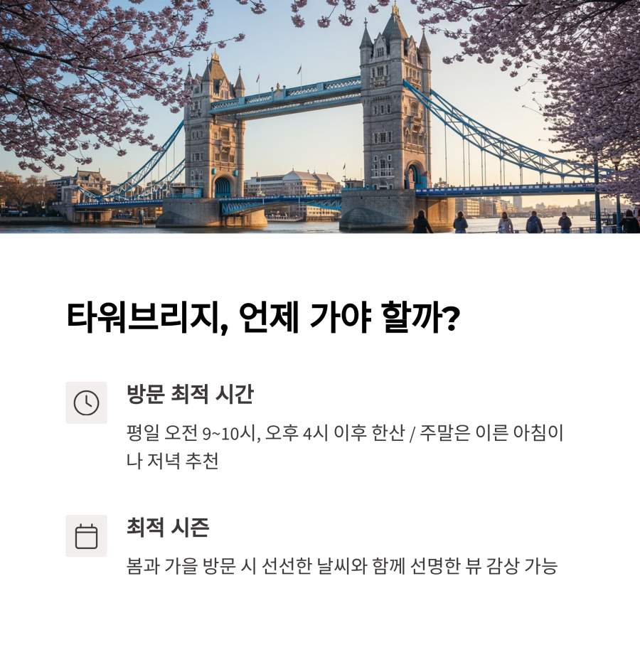 타워브리지를 방문할 때는 시간대를 잘 선택하는 것이 중요해요.