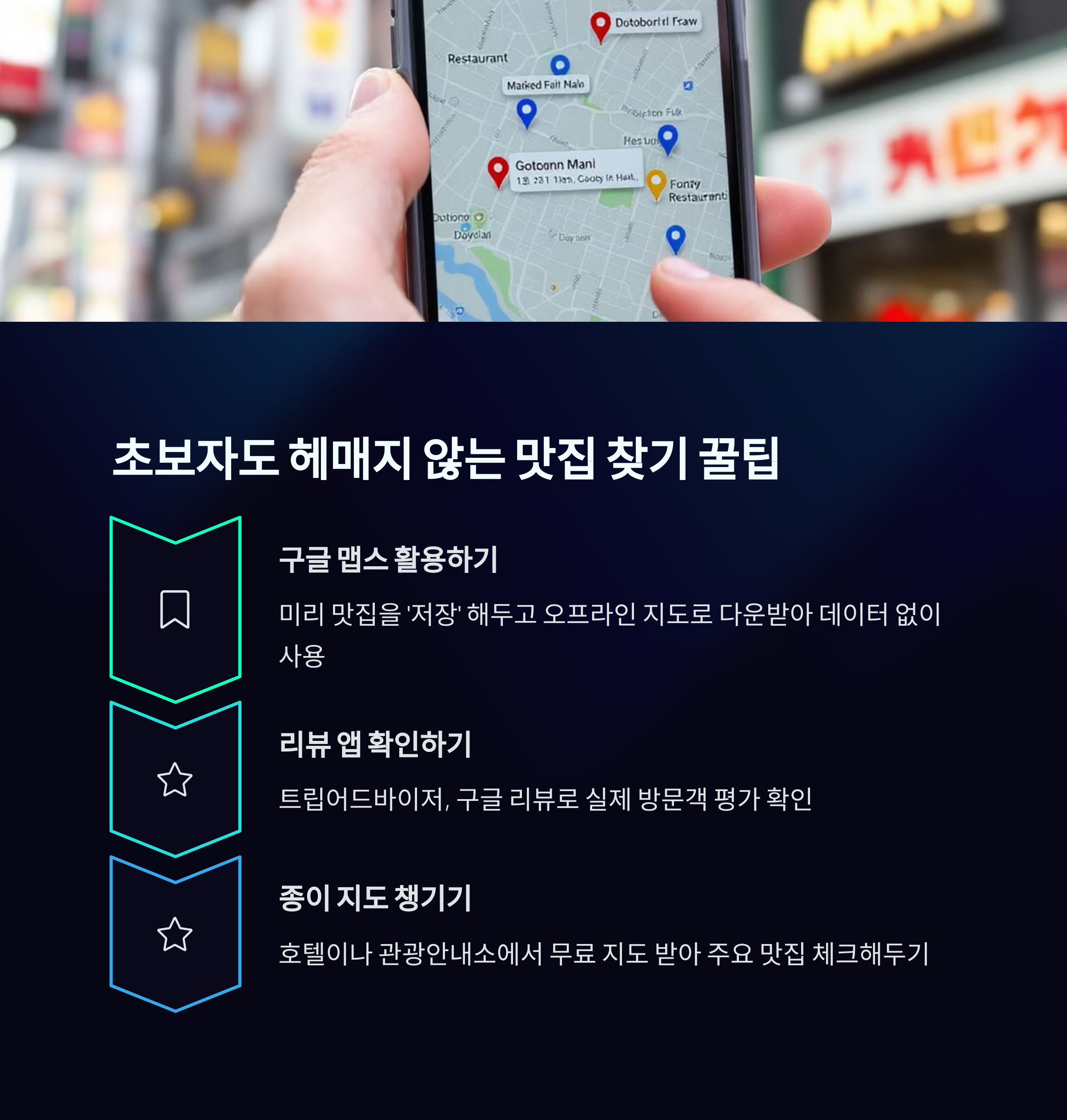 먼저, 구글 지도에 '도톤보리' 또는 '도톤보리 맛집'을 검색해보세요. 그리고 나서 '나만의 지도 만들기' 기능을 활용하면 방문하고 싶은 맛집을 미리 저장할 수 있어요!