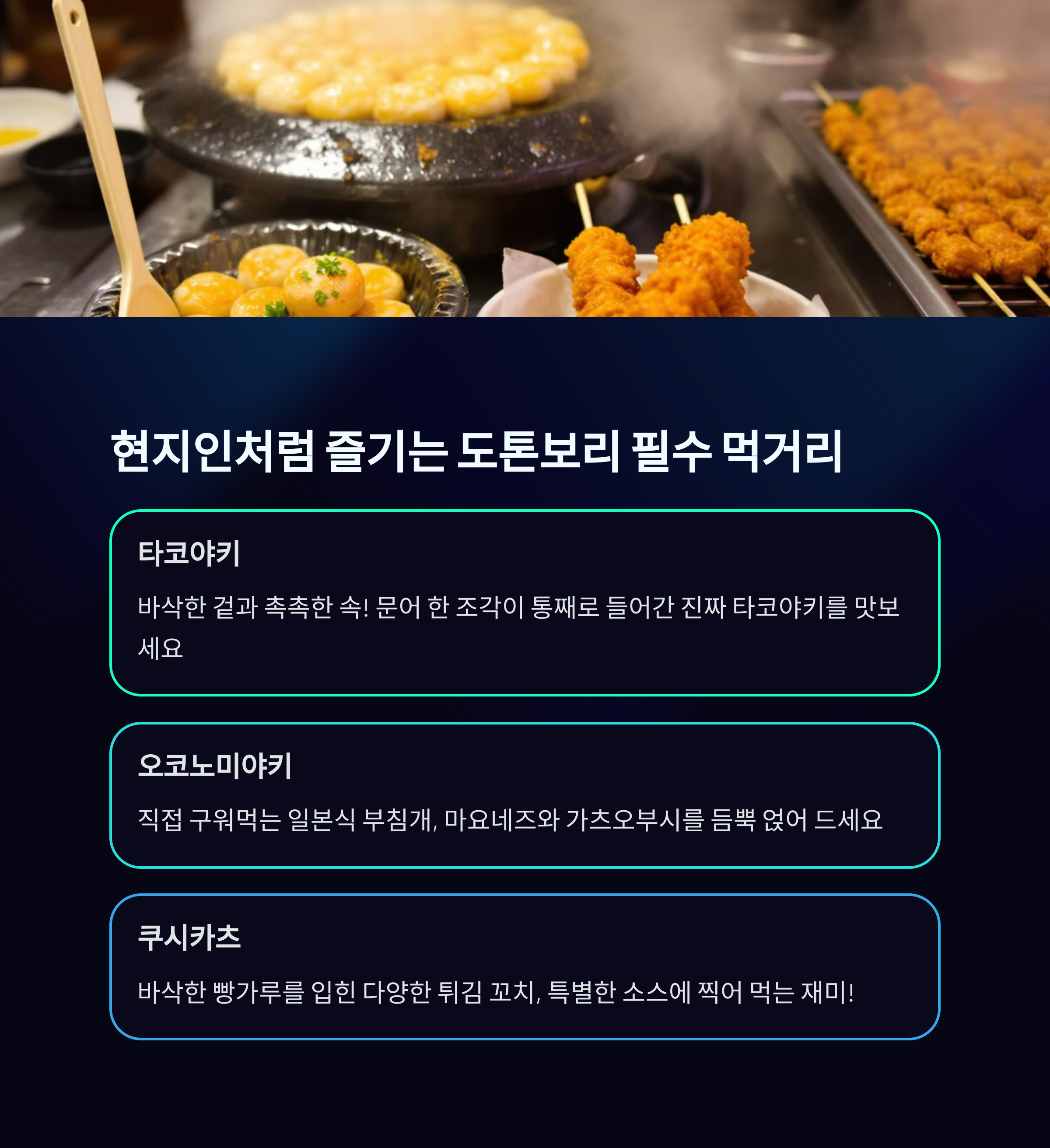 | 도톤보리 위치 | 대표 음식 |
