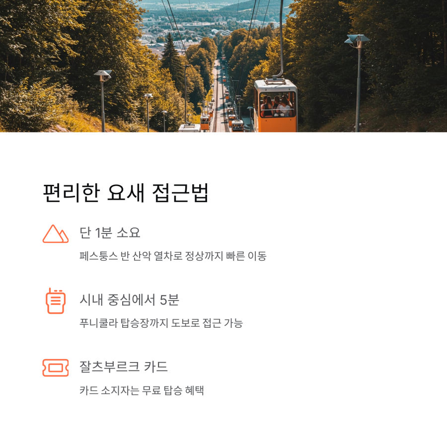 많은 여행자들이 모르는 사실! 호엔잘츠부르크 요새에는 가파른 계단을 오르지 않고도 쉽게 갈 수 있는 케이블카(푸니쿨라)가 있답니다.
