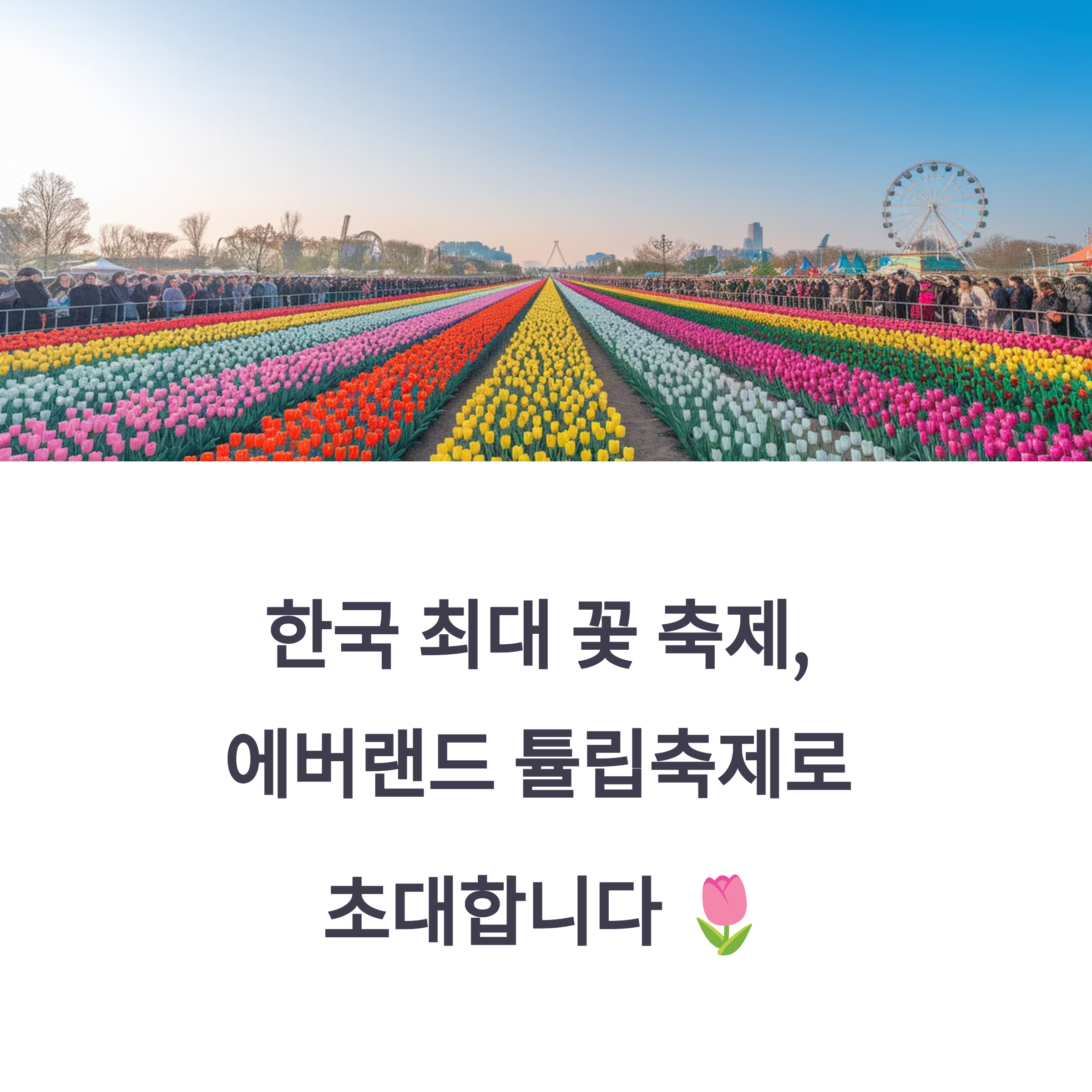 매년 봄마다 개최되는 에버랜드 튤립축제는 국내 최대 규모를 자랑하는 꽃 축제 중 하나로, 약 120만 송이의 다양한 튤립이 방문객을 맞이합니다.