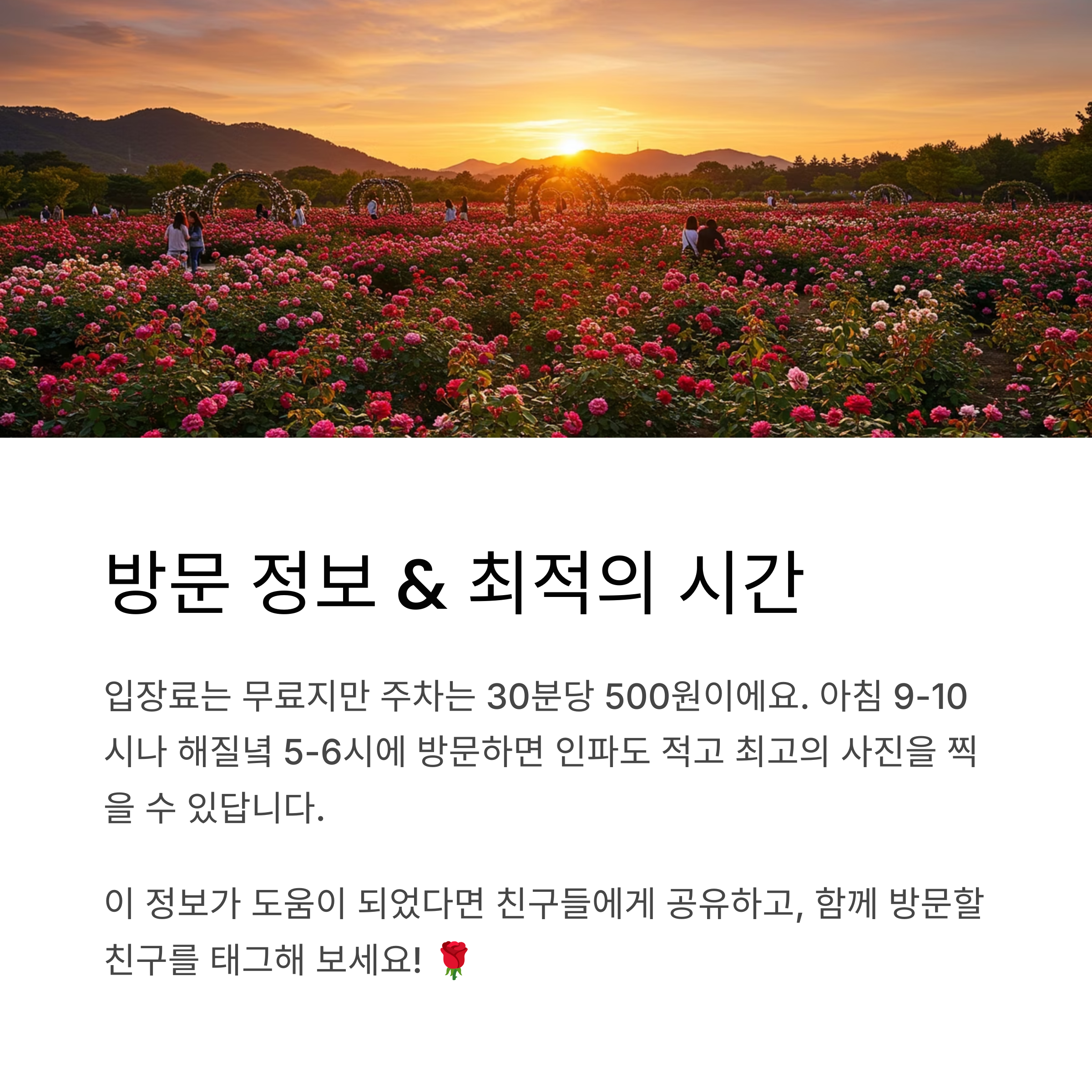 지금까지 울산대공원 장미축제에서 찍은 인생샷 모음에 대해 알아보았어요. 올해 봄, 울산대공원에서 아름다운 장미와 함께 인생샷을 남겨보는 건 어떨까요? 💕