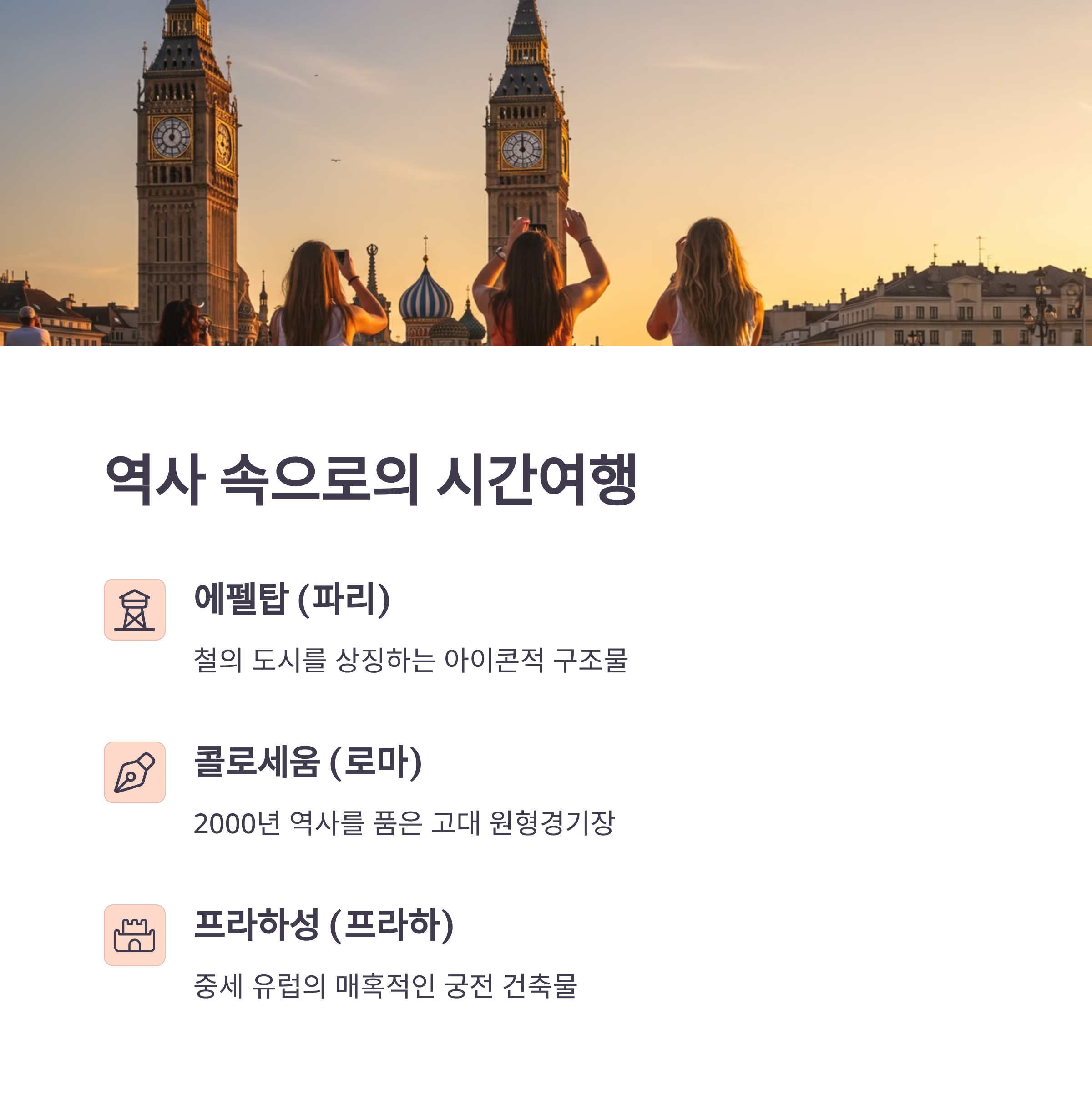 유럽 여행은 단순히 관광지를 방문하는 것을 넘어 다양한 문화와 역사를 경험하는 여정입니다.