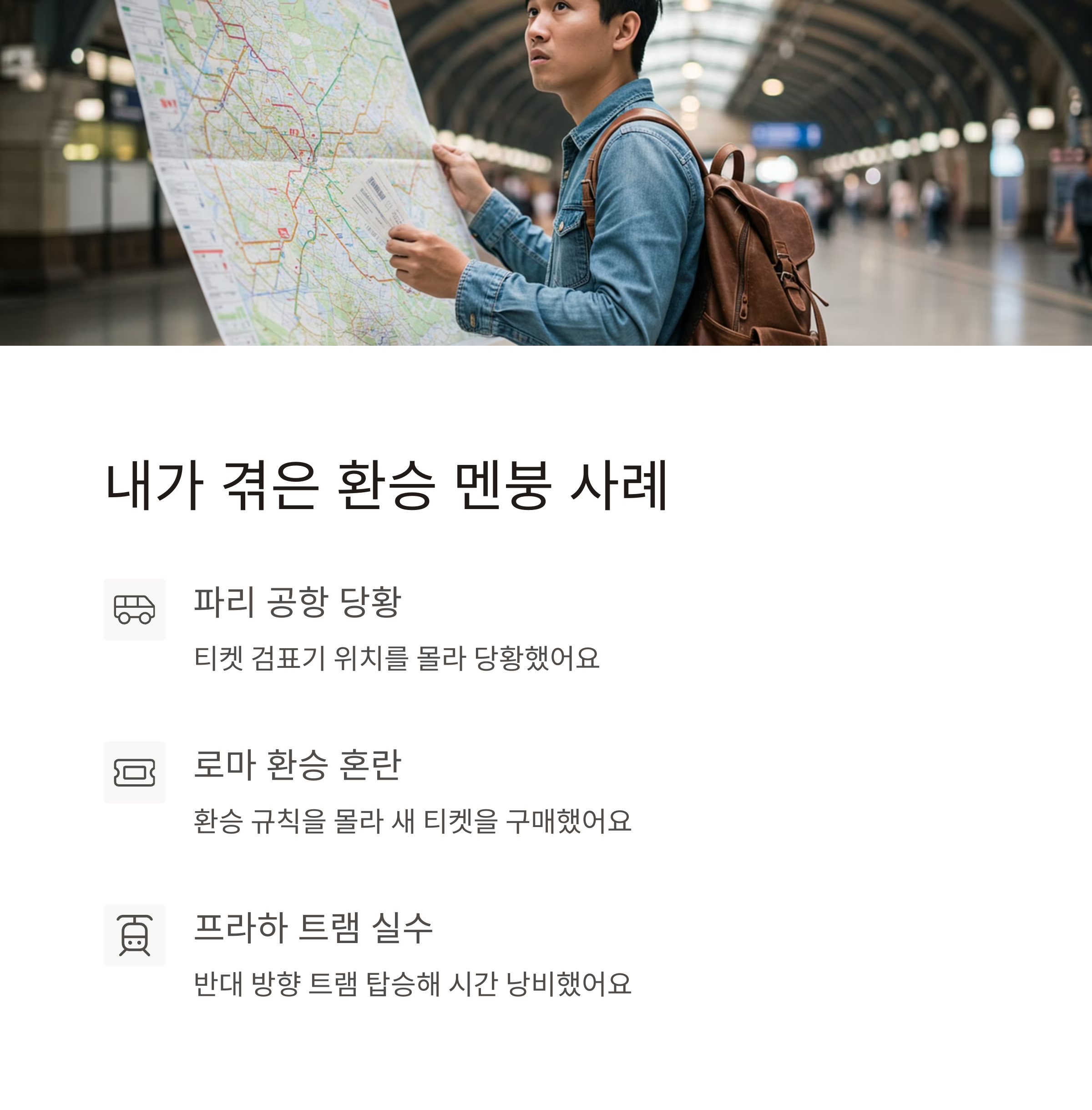 | 스트라이크가 발생하면 어떻게 해야 하나요? | 유럽에서는 교통 파업이 자주 발생해요. 여행 전 현지 뉴스를 확인하고, 대체 교통수단이나 경로를 미리 파악해두는 것이 좋습니다. |