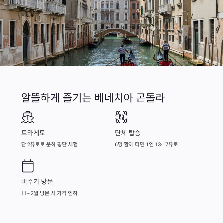 특히 현지 가격으로 곤돌라를 타는 방법부터 최적의 시간대까지, 알짜배기 정보만 쏙쏙 담아왔습니다. 함께 베네치아의 낭만을 제대로 즐겨볼까요?