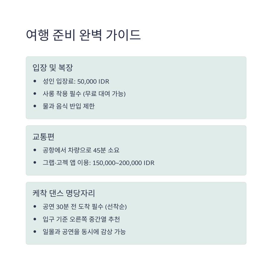 울루와뚜 케착 댄스의 진정한 매력을 느끼려면 좋은 자리 선점이 정말 중요해요! 🎯