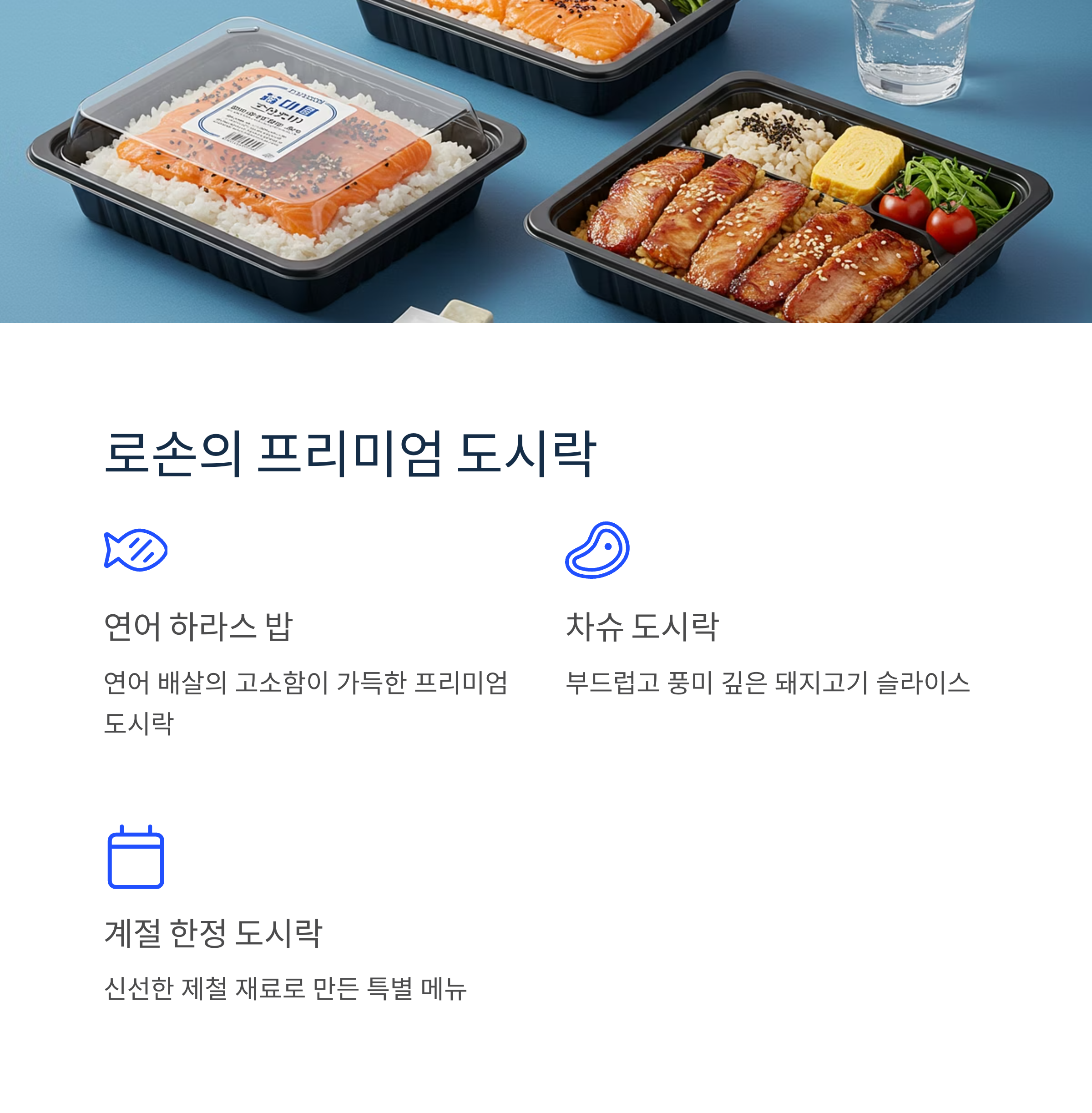 로손은 특히 계절 한정 도시락이 많아서 방문 시기에 따라 특별한 메뉴를 만날 수 있다는 점도 매력적이에요.