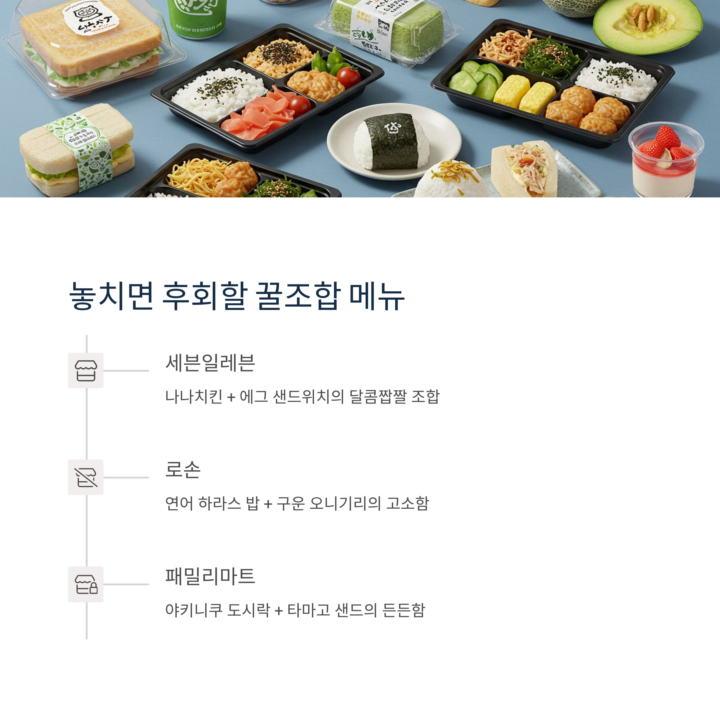 이제 제가 직접 경험한 일본 편의점 도시락 꿀조합을 소개해드릴게요! 😍