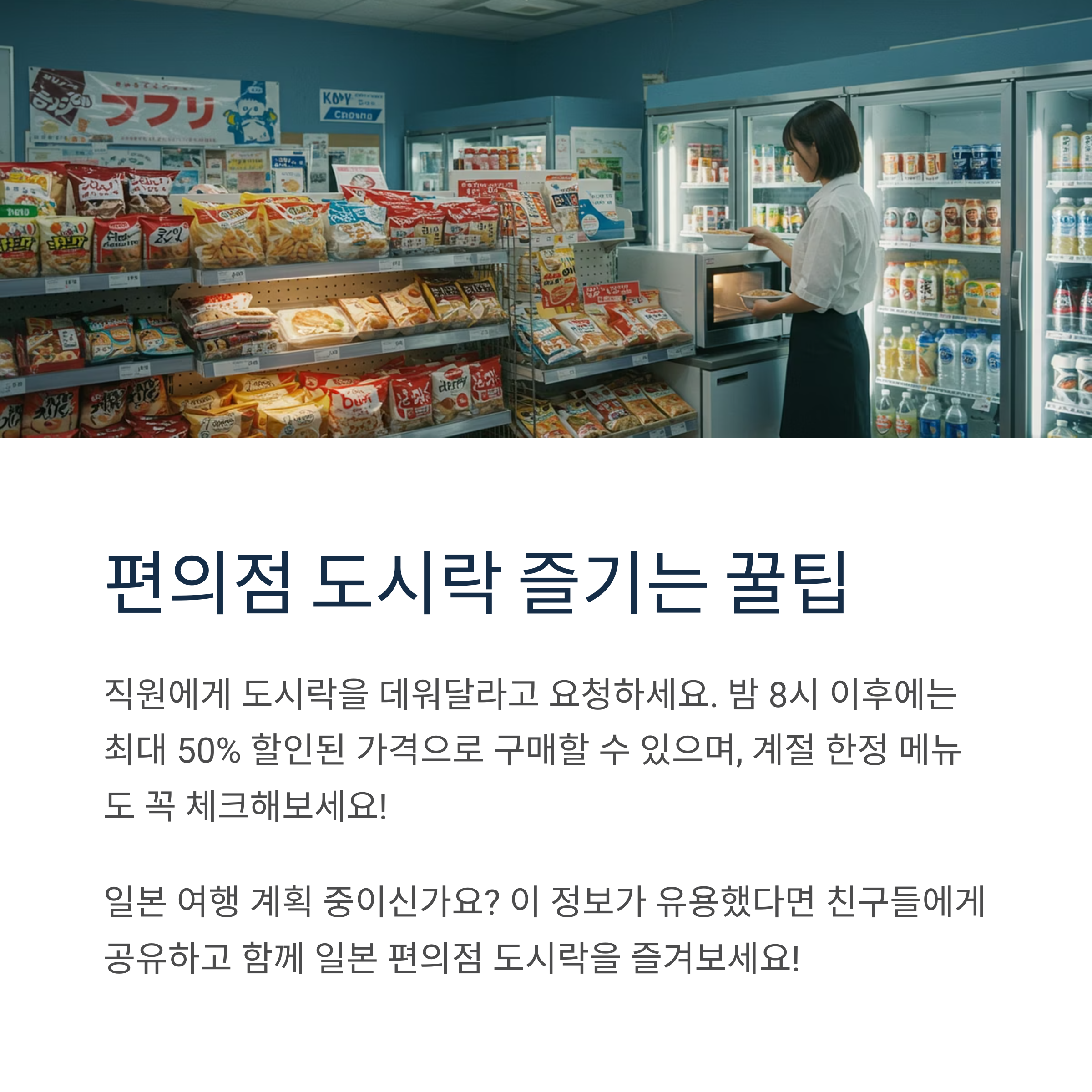 일본 편의점 도시락의 세계는 정말 깊고 넓답니다. 여행 기간 동안 다양한 도시락을 경험해보시면서 나만의 꿀조합을 찾아보세요! 😊