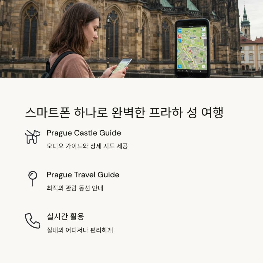 'Prague Castle Guide' 앱은 오디오 가이드와 상세한 지도를 제공해서 셀프 투어하기 좋아요. 오프라인에서도 작동한다는 게 큰 장점이죠.