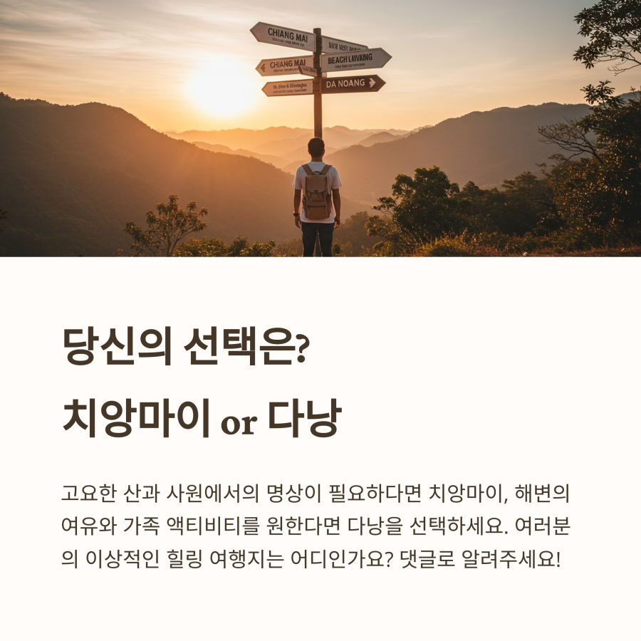 치앙마이? 다낭? 조용한 힐링 여행지 최종 승자는?
