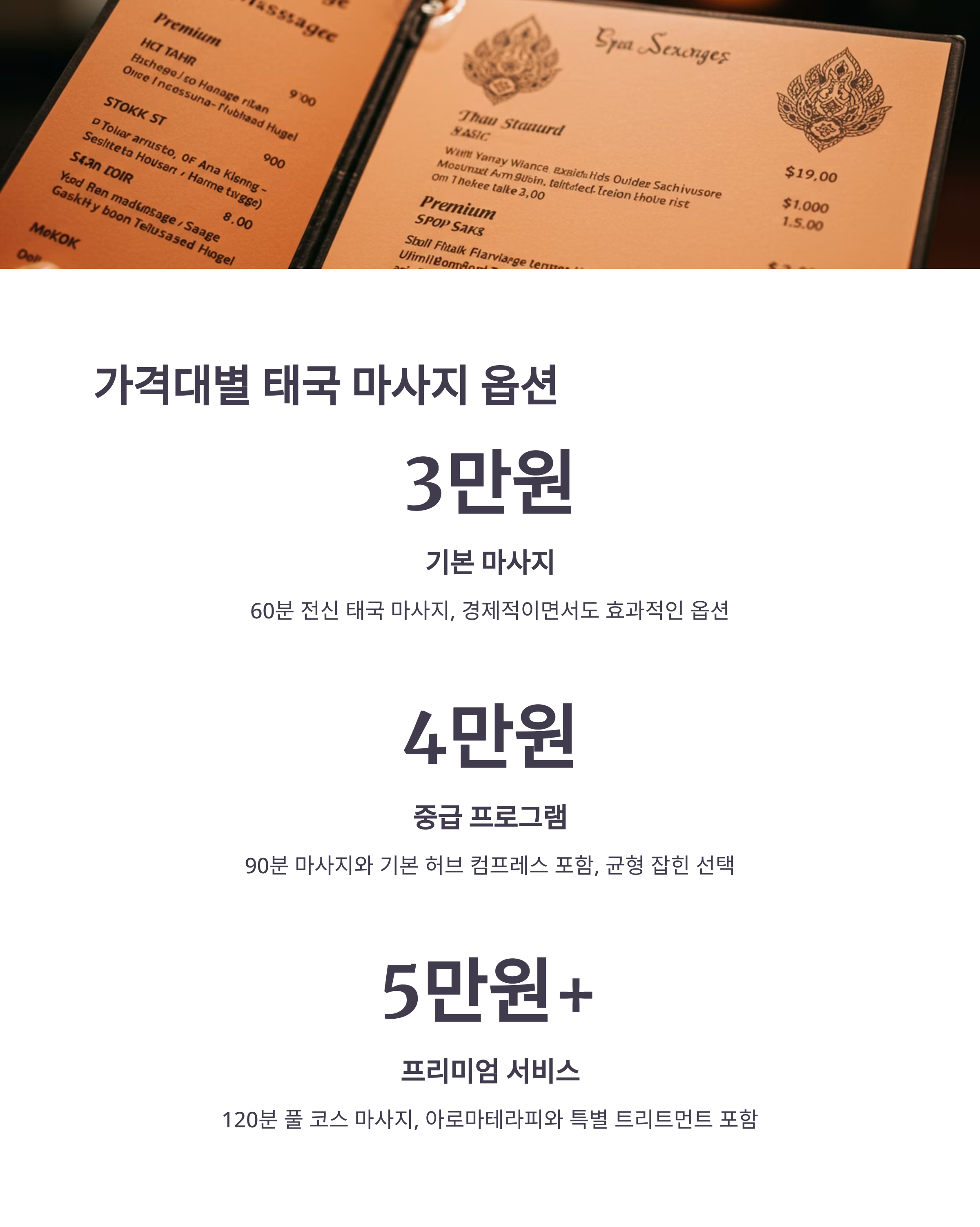 태국 마사지도 가격대에 따라 서비스 품질이 달라질 수 있어요. 3만원대의 합리적인 가격으로도 괜찮은 서비스를 받을 수 있지만, 5만원 이상의 프리미엄 샵은 확실히 차별화된 경험을 제공해요. 💰