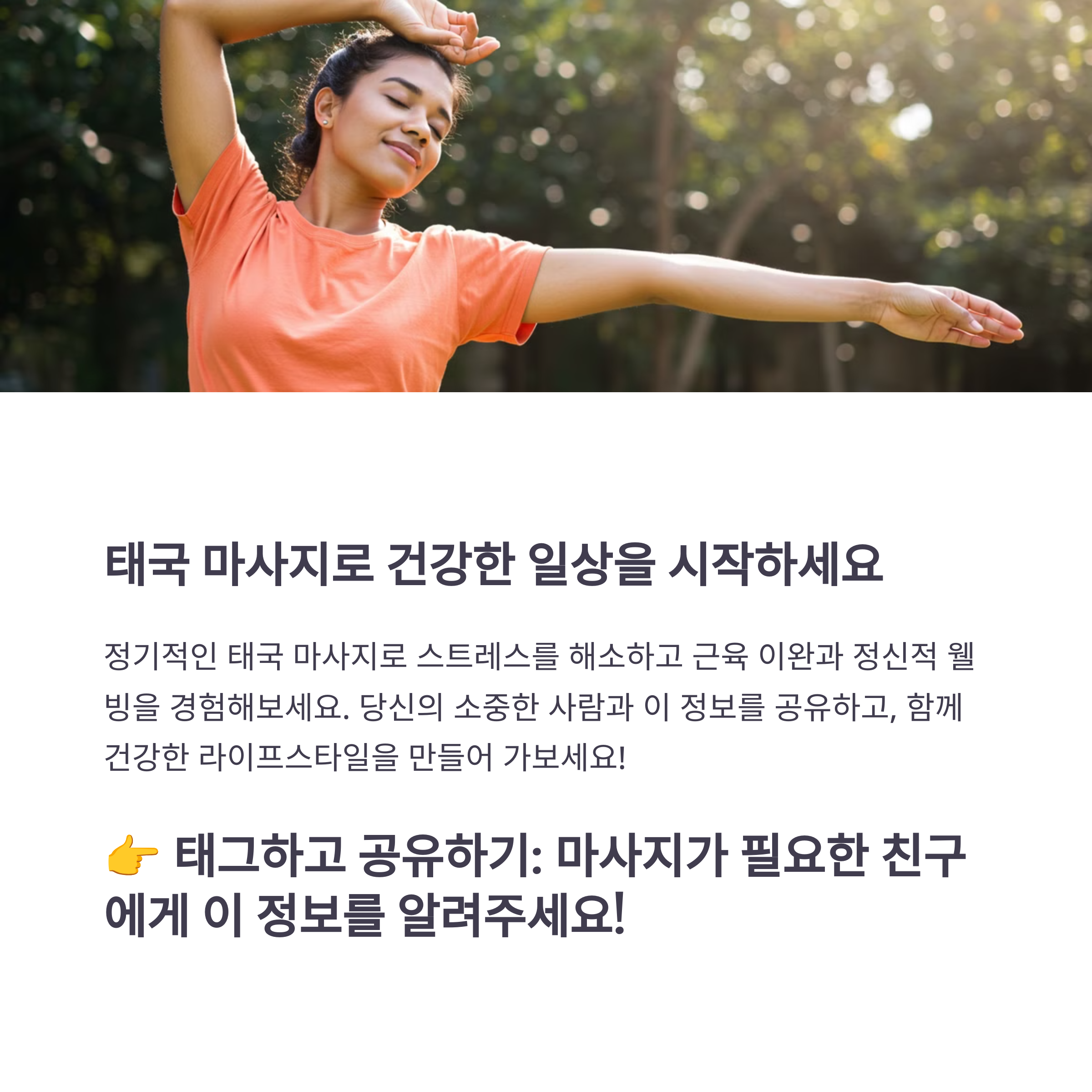 이상으로 태국 마사지에 대한 정보를 모두 알아봤어요. 여러분도 이제 나에게 맞는 태국 마사지 샵을 찾아 지친 몸과 마음을 힐링해보세요!