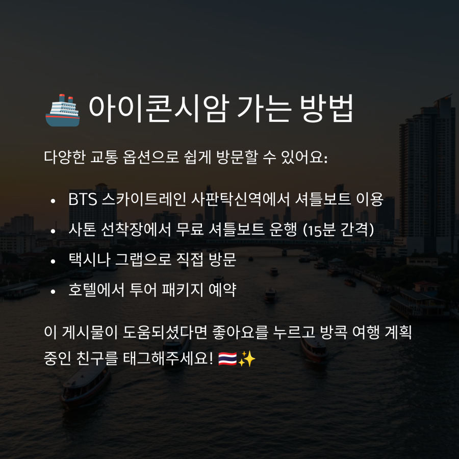🚢 아이콘시암 교통 및 접근 방법