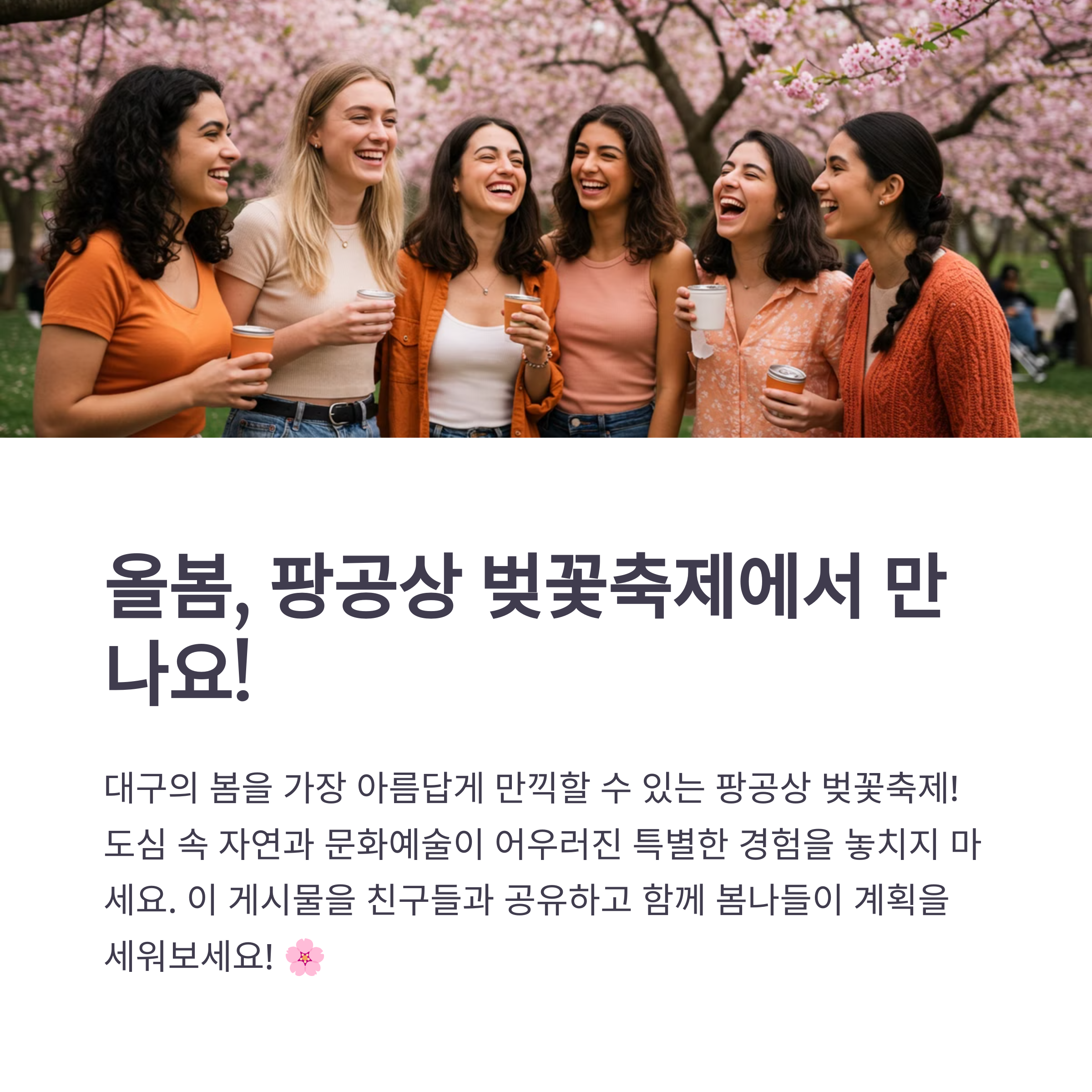 대구를 방문할 계획이 있다면, 3월 말부터 4월 중순까지 열리는 팡공상 벚꽃축제를 꼭 일정에 넣어보세요! 🌸