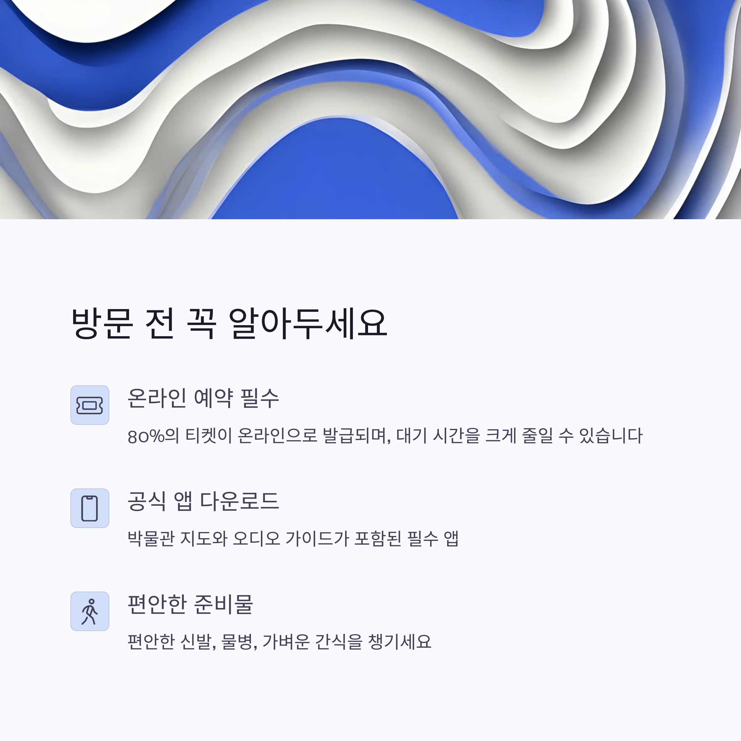 | 오디오 가이드 | 온라인 예약 | 피크 타임 피하기 |