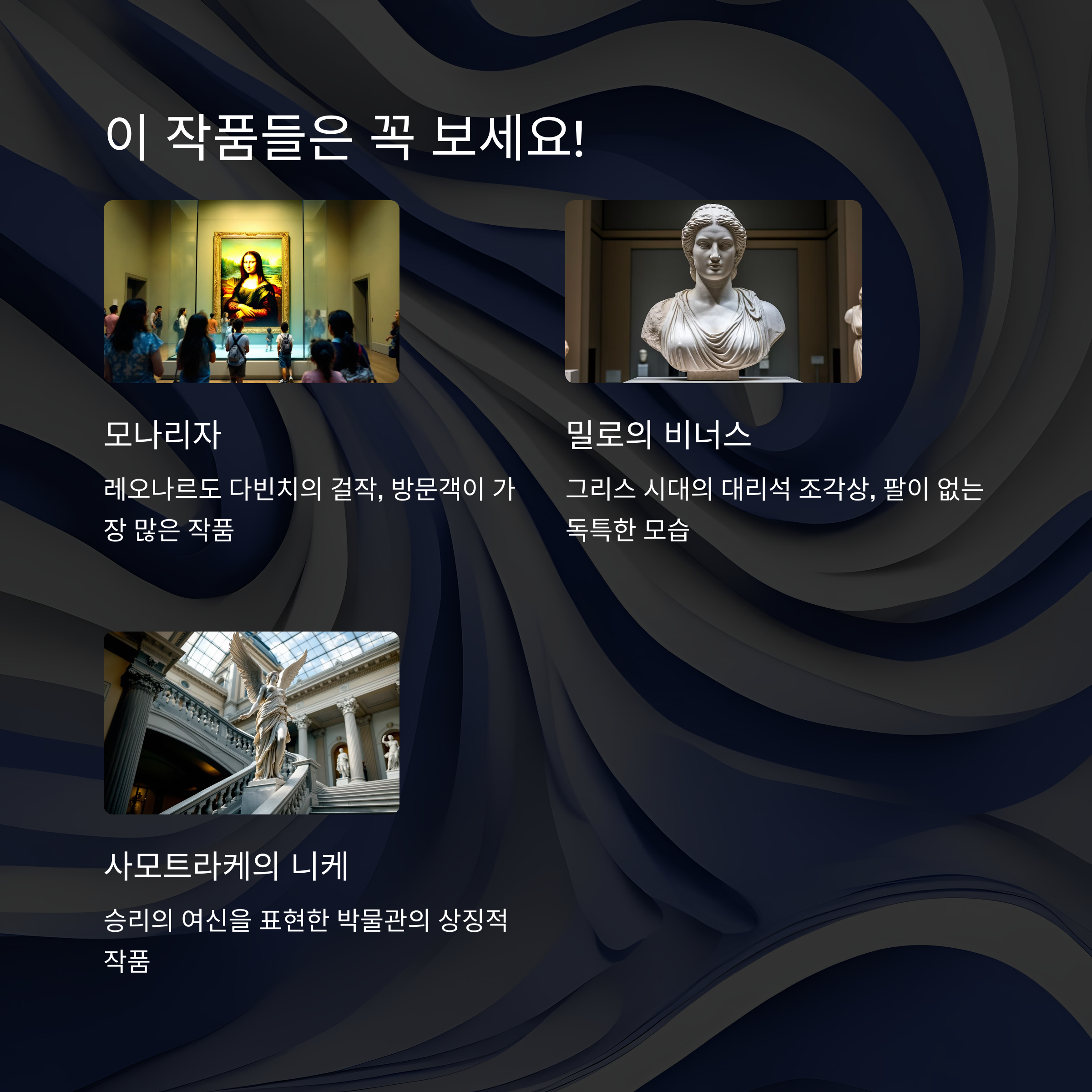 | 루브르 박물관에서 꼭 봐야 할 작품은 무엇인가요? |