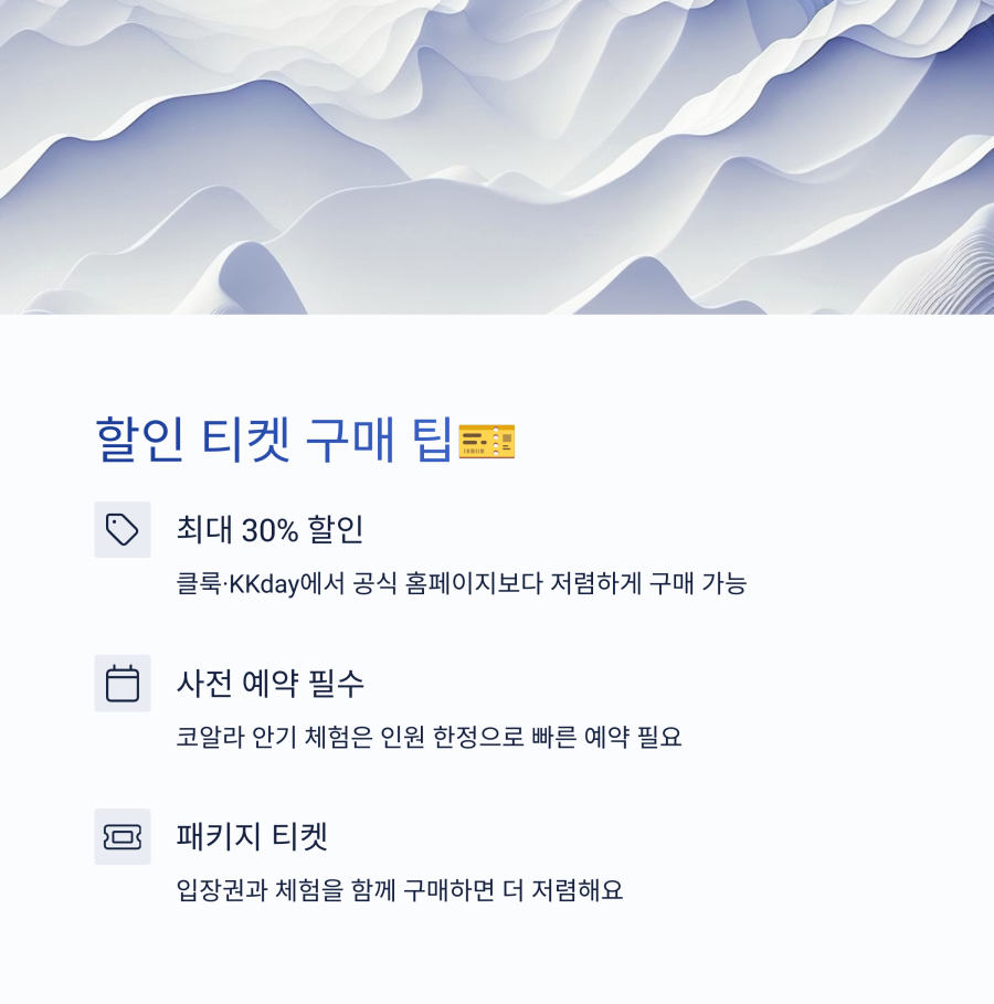가장 먼저, 공식 홈페이지를 통해 예약하면 가장 확실하지만, 클룩(Klook)이나 KKday 같은 사이트에서 예약하면 할인된 가격으로 티켓을 구매할 수 있어요. 심지어 때로는 30% 정도까지 할인받을 수 있답니다!
