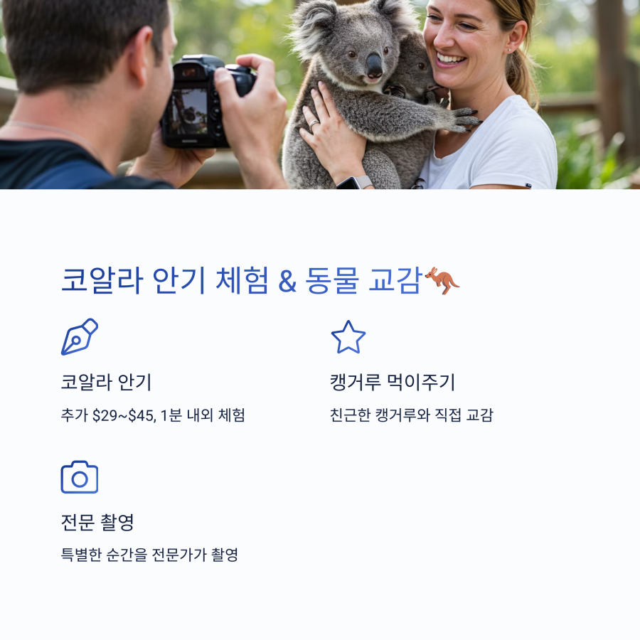 특히 이곳은 단순히 동물을 구경하는 것뿐만 아니라 직접 코알라를 안아보고 사진도 찍을 수 있는 특별한 경험을 제공해요. 호주에서도 코알라를 안을 수 있는 곳이 점점 줄어들고 있어서 더욱 소중한 기회랍니다.