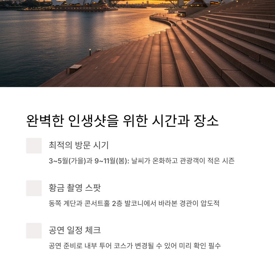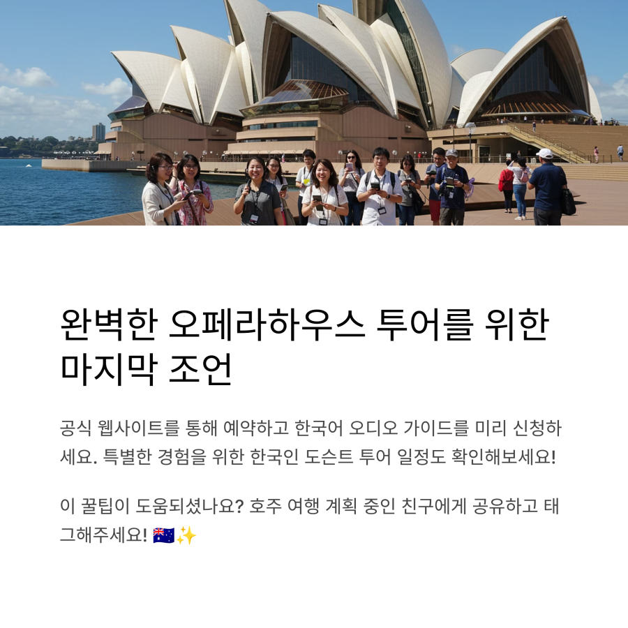 마지막으로 오페라하우스 투어 예약 시 꼭 알아두시면 좋을 팁들을 정리해드릴게요! 😊
