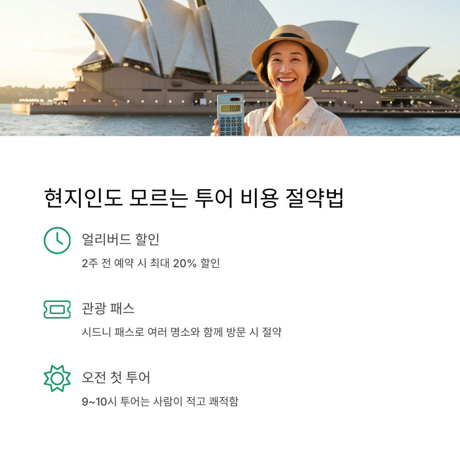 오페라하우스 투어는 호주 여행 비용 중 적지 않은 부분을 차지하는데요, 몇 가지 꿀팁을 활용하면 똑똑하게 비용을 절약할 수 있어요!