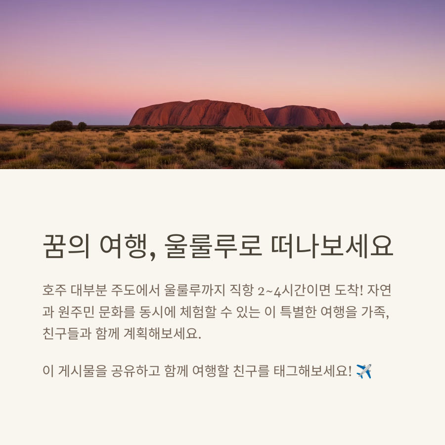 걱정 마세요! 제가 직접 다녀온 경험과 현지인들의 조언을 바탕으로 울룰루 여행을 위한 완벽한 가이드를 준비했습니다.